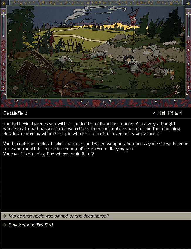선택지 게임인데요. 스토리를 안 보실 분은 아래 순서대로 선택하시면 클리어됩니다. (스포일러 주의)