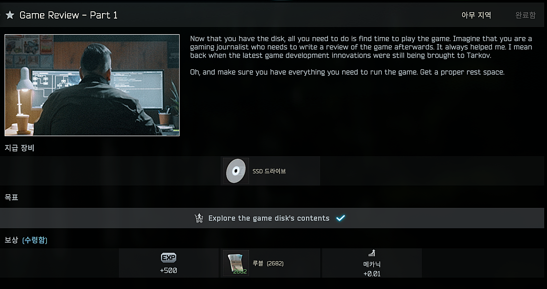 타르코프 퀘스트 - Game Review - Part 1 (미니게임 스포) 본문