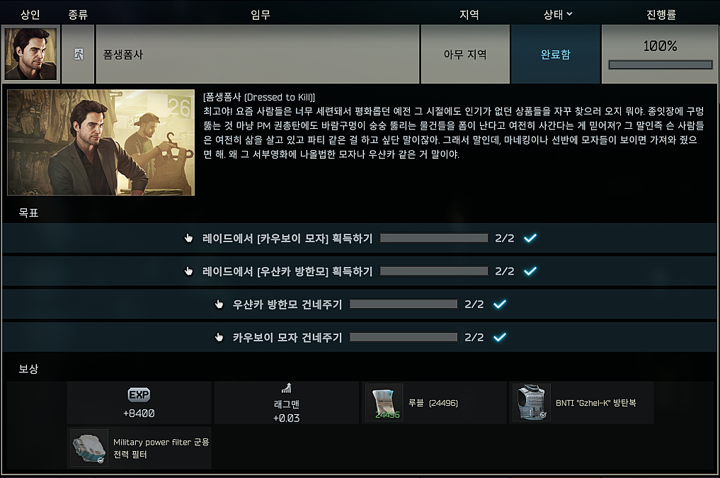 타르코프 퀘스트 - 폼생폼사 (Dressed to Kill) 본문