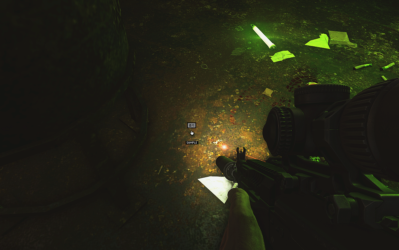 바닥을 잘 살펴보면 샘플을 얻을 수 있습니다. 조준점에 흰점이 찍히는 걸 찾아가세요.