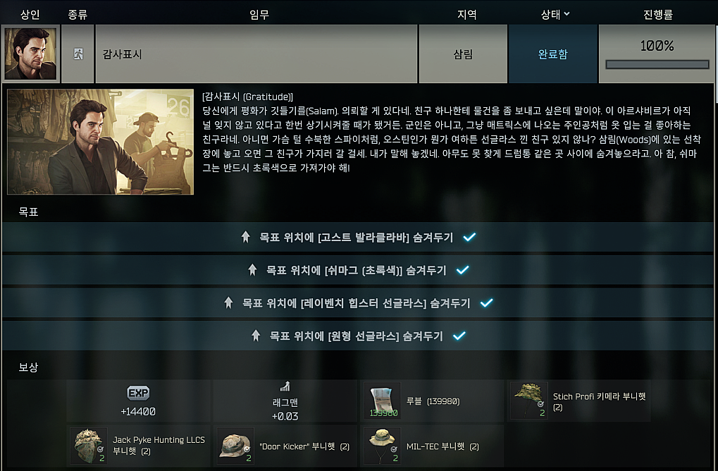 타르코프 퀘스트 - 감사표시 (Gratitude) 본문