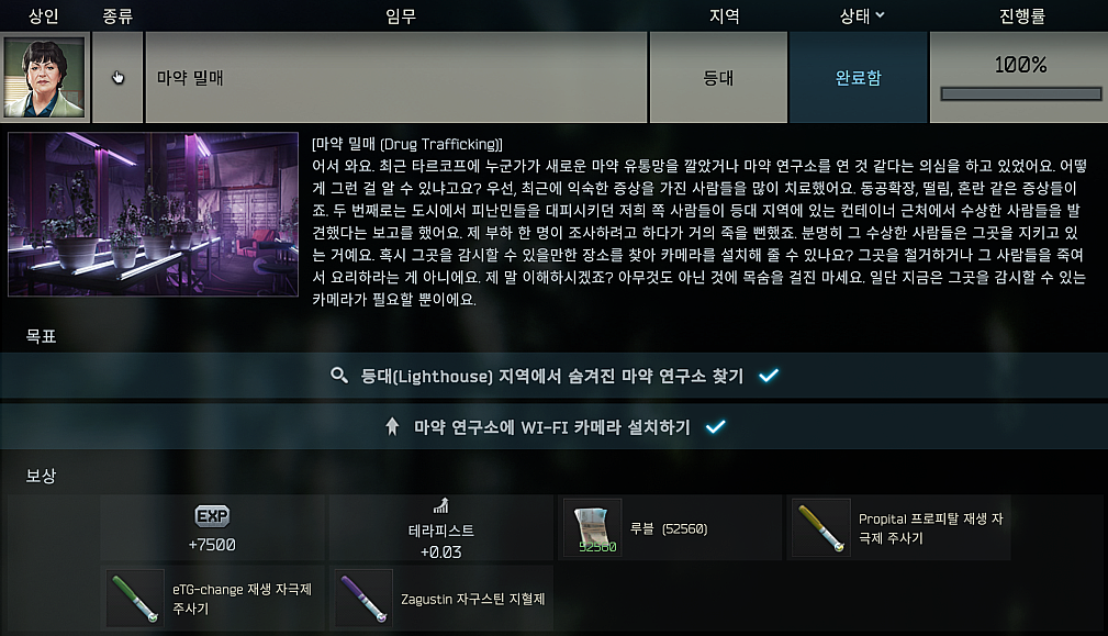 타르코프 퀘스트 - 마약 밀매 (Drug Trafficking) 본문