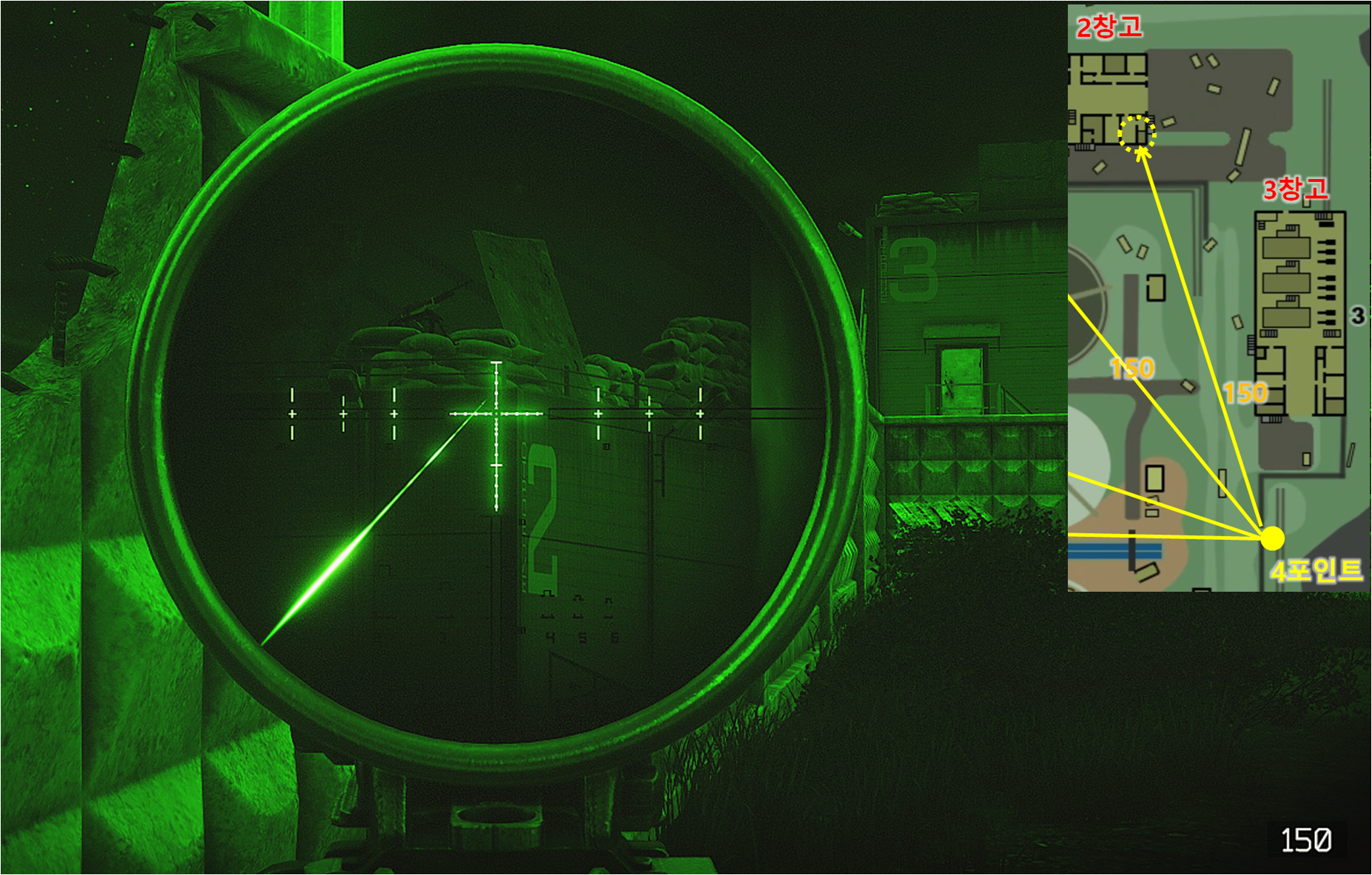 그리고 제가 스샷을 찍지 못했는데, 2창고 양 끝부분도 한 번씩 노려주세요. (영점 150)