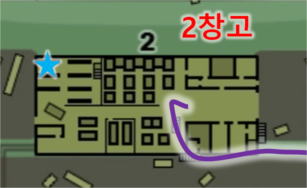 2창고도 클리어링해야 합니다. 2창고 쪽으로 이동해 마찬가지로 2층으로 들어갑시다.