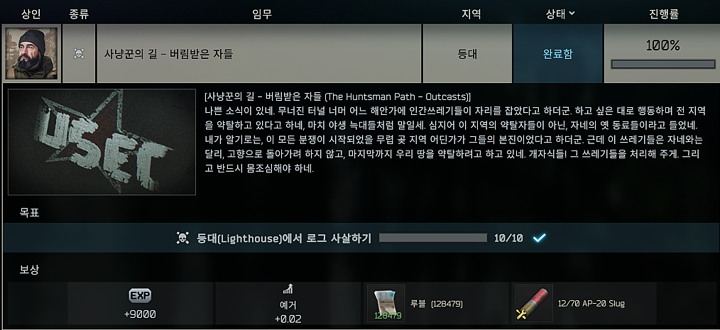타르코프 퀘스트 - 사냥꾼의 길 - 버림받은 자들 (The Huntsman Path - Outcasts)