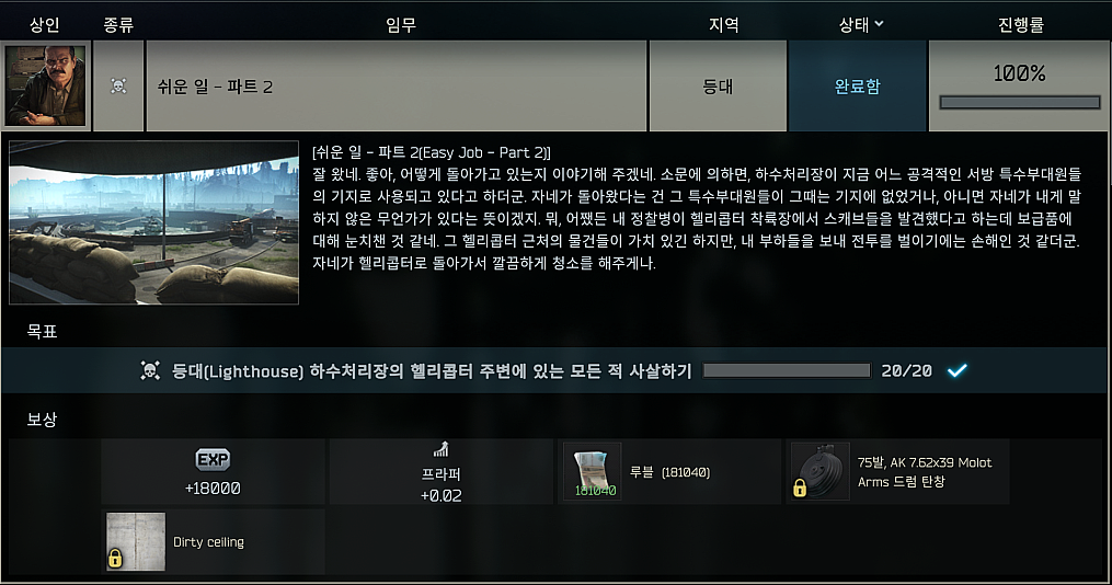 타르코프 퀘스트 - 쉬운 일 - 파트 2 (Easy Job - Part 2) 본문