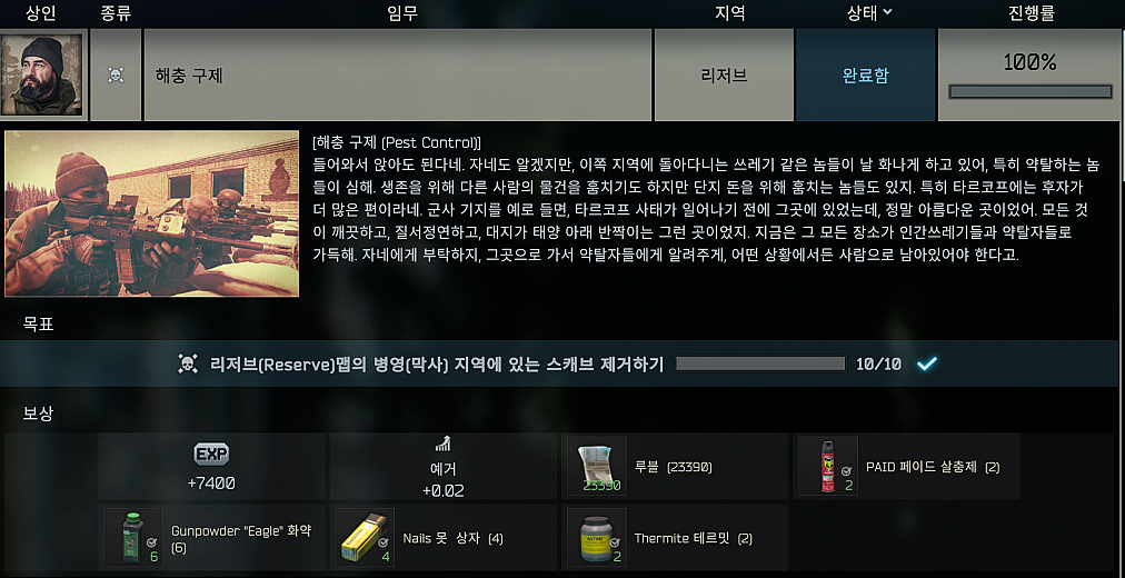 타르코프 퀘스트 - 해충 구제 (Pest Control) 본문