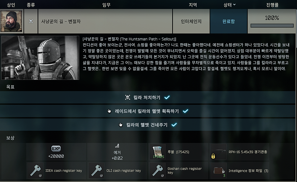타르코프 퀘스트 -사냥꾼의 길 - 변절자 (The Huntsman Path - Sellout)