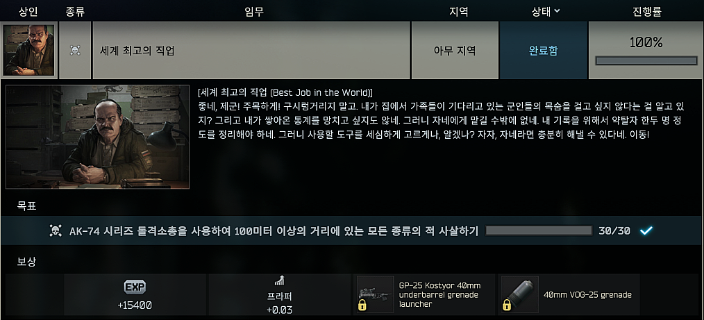타르코프 퀘스트 - 세계 최고의 직업 (Best Job in the World) 본문