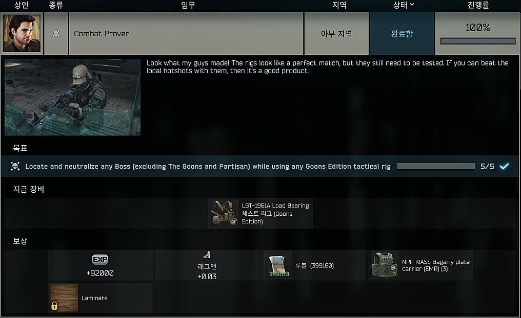 Goons Edition 전술 조끼(Tactical rig)를 착용하고 보스를 잡아야 합니다.