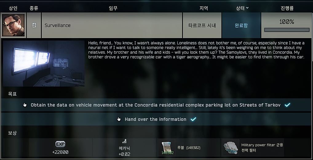 타르코프 퀘스트 - 감시 (Surveillance) 본문