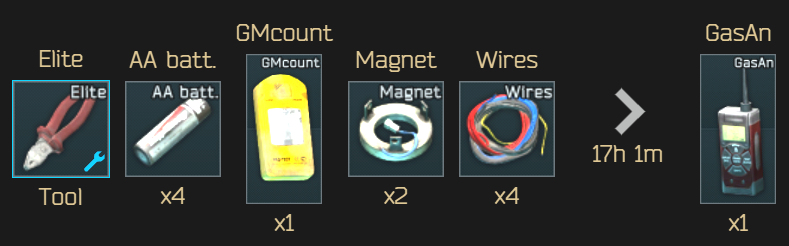 등대(Lighthouse), 리저브(Reserve), 미궁(labyrinth)에서 주로 구할 수 있습니다.![]() 하이드아웃(Hideout) 정보 수집 시설 2레벨(Intelligence Center lv. 2)에서 제작 할 수 있습니다. |