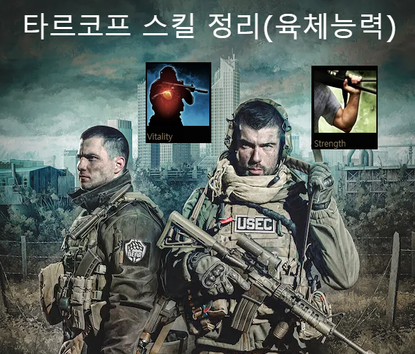 타르코프는 주인공 캐릭터(PMC)를 육성하는 PMCㅔ스 메이커 게임입니다. PMC는 여러가지 경험으로 여러가지 스킬을 훈련할 수 있는데요. 타르코프의 전쟁터에 뛰어드는 PMC에게 있어 가장 중요한 육체능력에 관한 스킬을 정리해보려고 합니다.