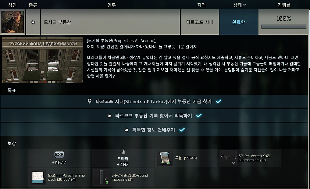 타르코프 퀘스트 - 도시의 부동산 (Properties All Around) 본문