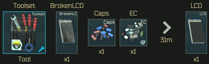- 레이드에서 구한(Found in raid) [Working LCD 작동하는 LCD] 1개를 건네주세요.
