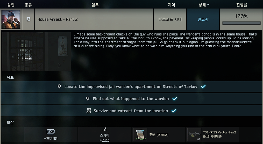 타르코프 퀘스트 - 가택 연금 - 파트 2 (House Arrest - Part 2) 본문