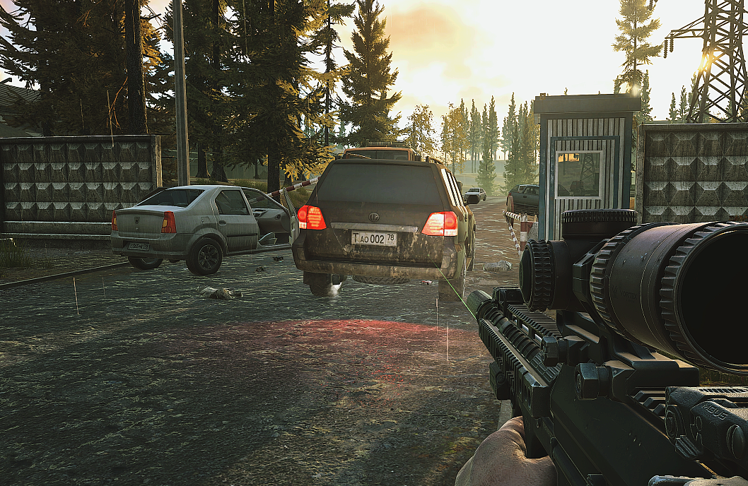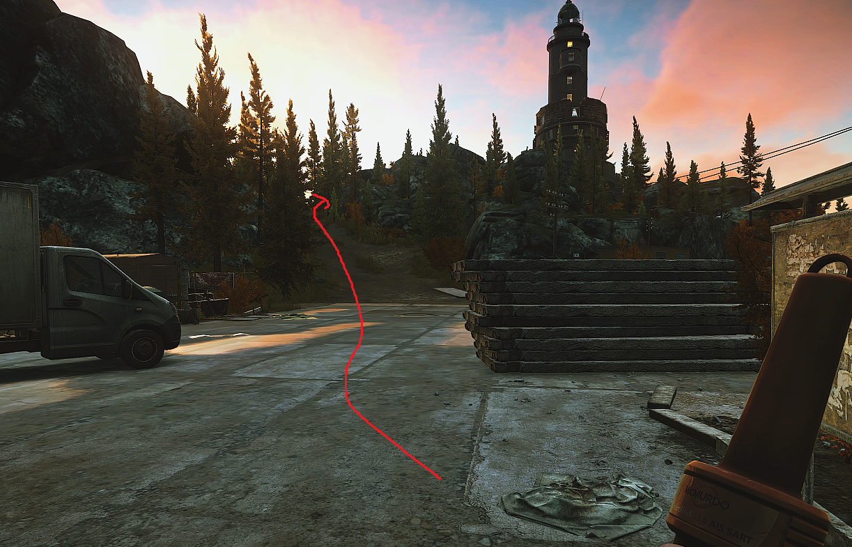 - 타르코프 시내(Streets of Tarkov)에 있는 두 번째 Patrol-A 장갑차에 MS2000 마커를 부착하여 표시하세요.