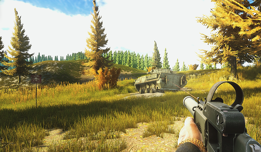 정면에 보이는 탱크 가까이 가면 됩니다. 너무 앞으로 가면 지뢰가 터지니 주의하세요.