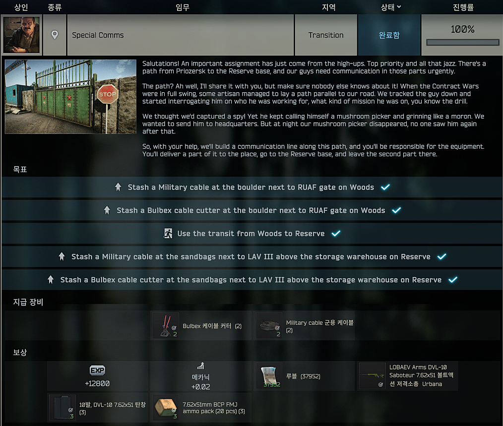 | 타르코프 퀘스트 - 실종된 정보원 (Missing Informant) (0) | 2025.09.28 |