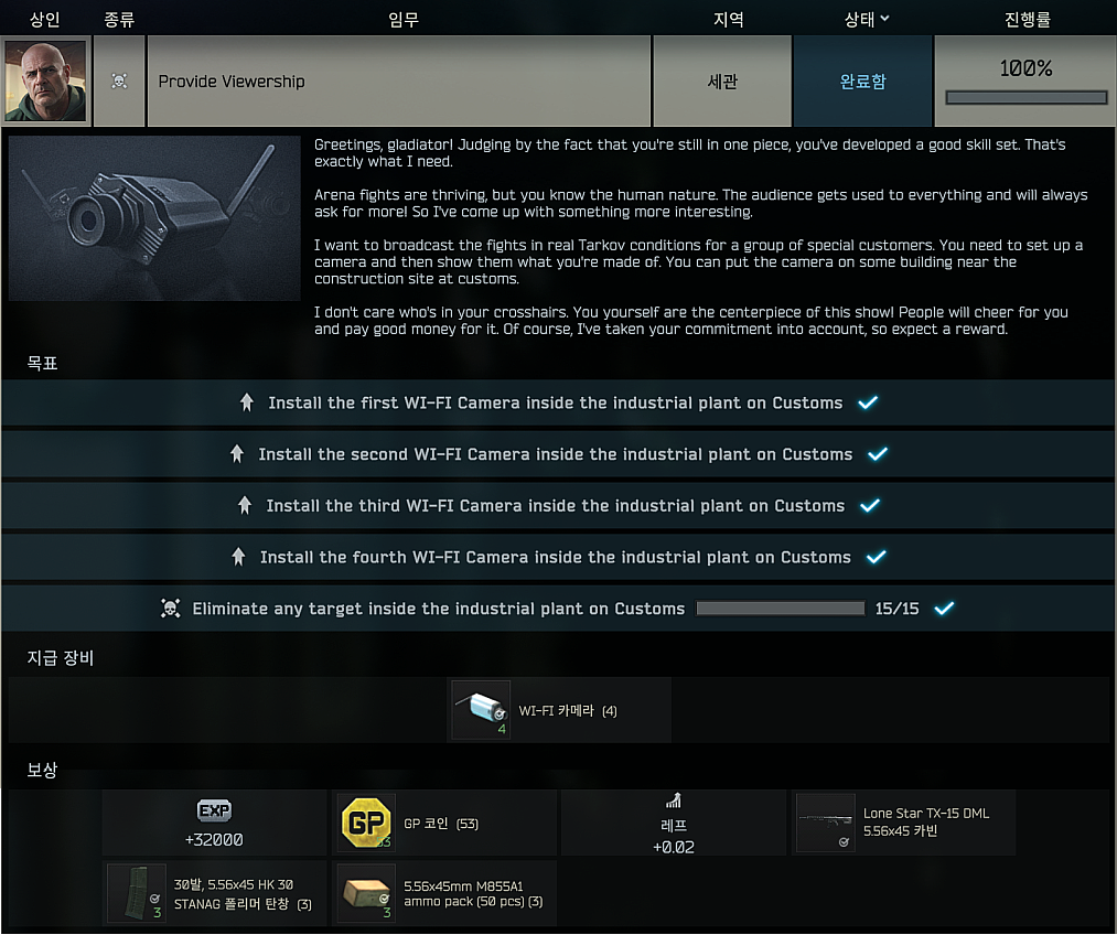 산업시설 범위 내에서 스캐브나 PMC 등 15명을 사살하면 됩니다.