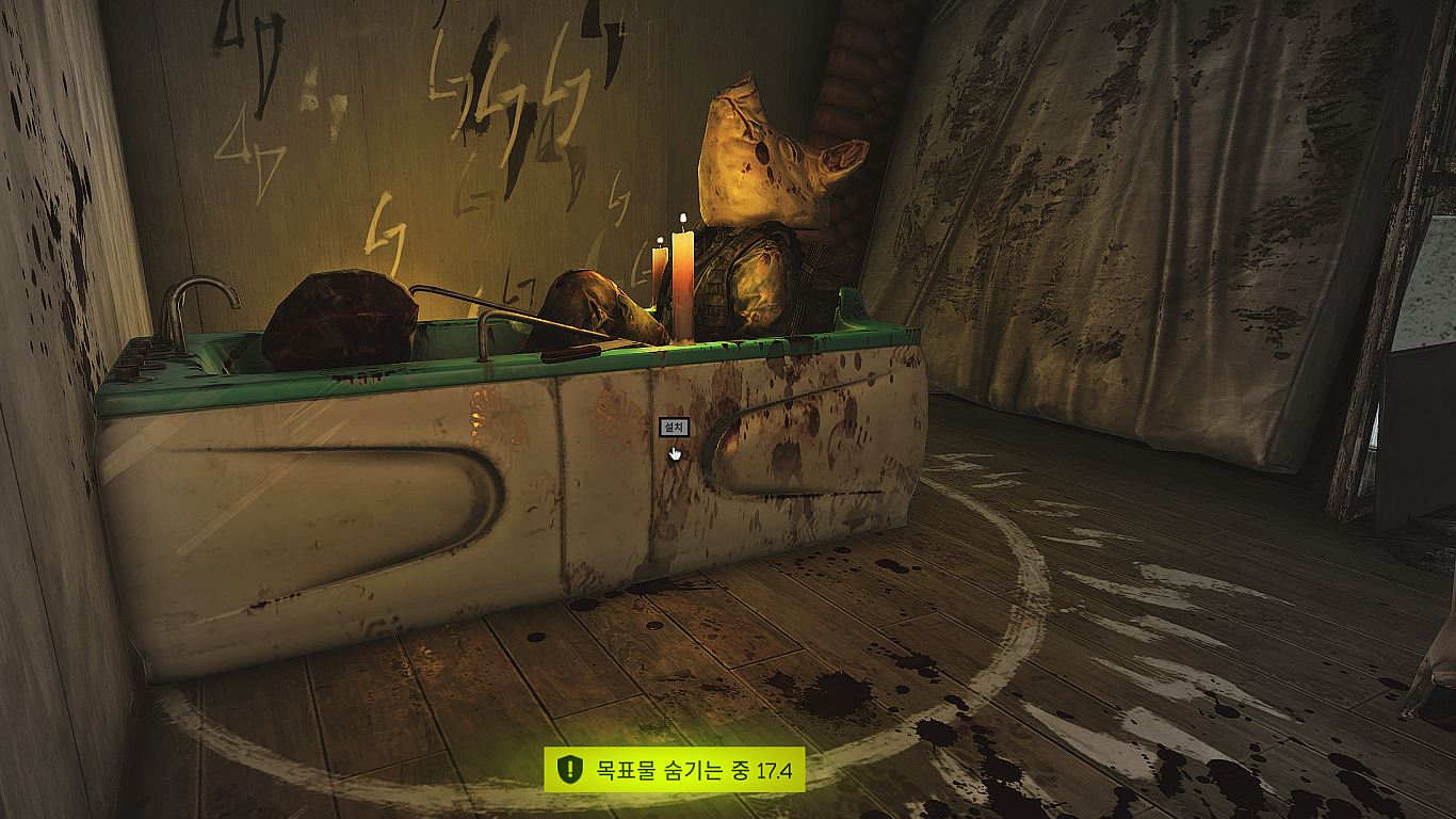 - 삼림, 우드(Woods)의 강변 마을에서 표시된 서클에 광신도의 칼(Cultist knife)을 숨기세요.