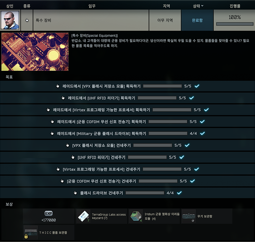 타르코프 퀘스트 - 특수 장비 (Special Equipment) 본문