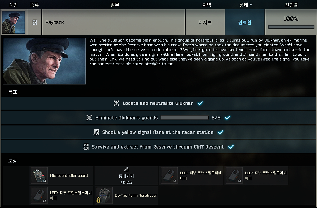 | 타르코프 퀘스트 - Return the Favor (0) | 2025.10.08 |