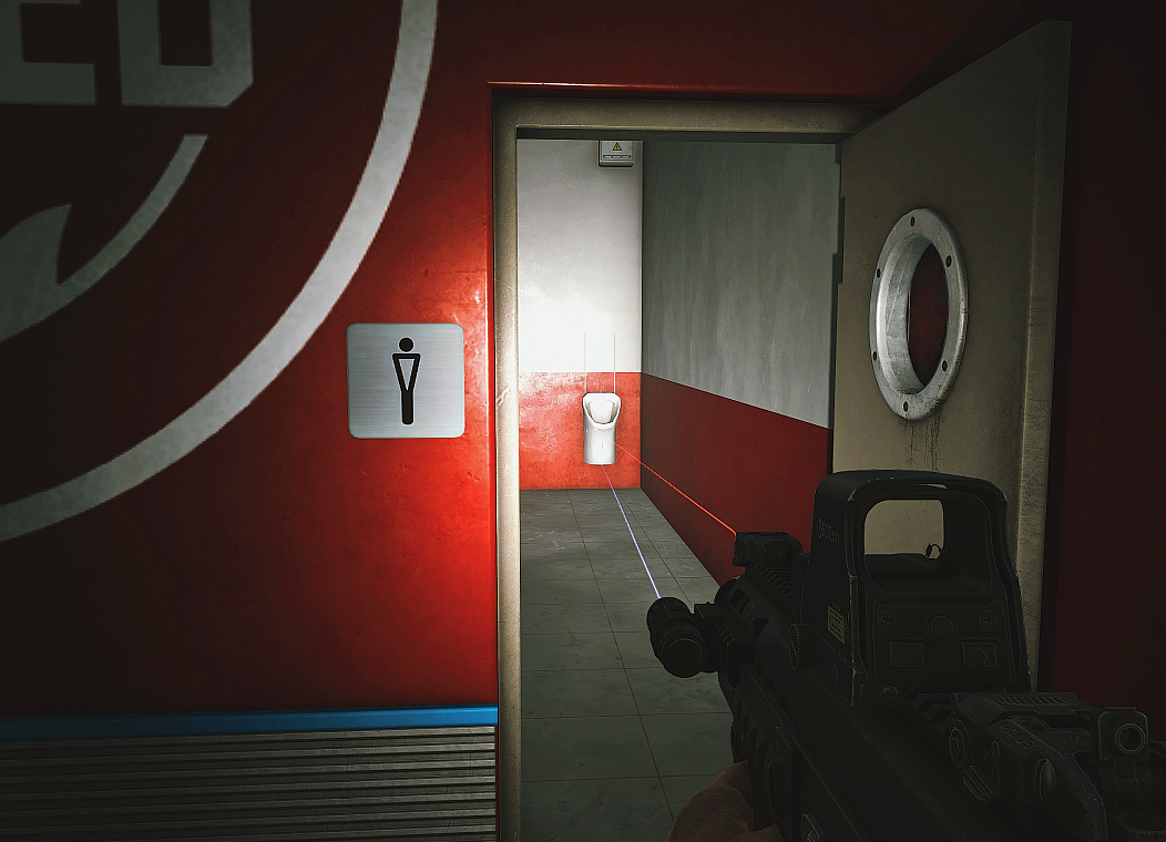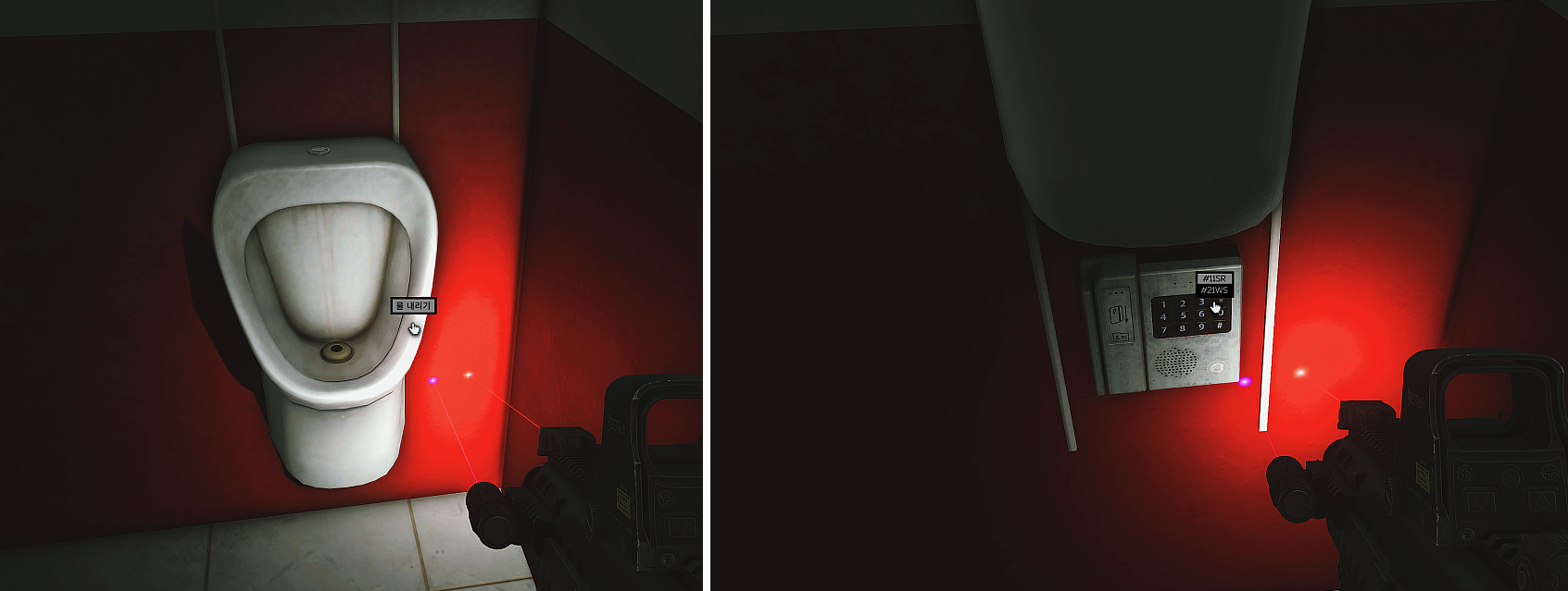 소변기와 상호작용하면 숨겨진 키카드 패널(keycard panel)이 드러납니다. Object #11SR keycard를 긁어줍니다. 이후 비밀 은신처("Saferoom Exfil")로 이동합니다.