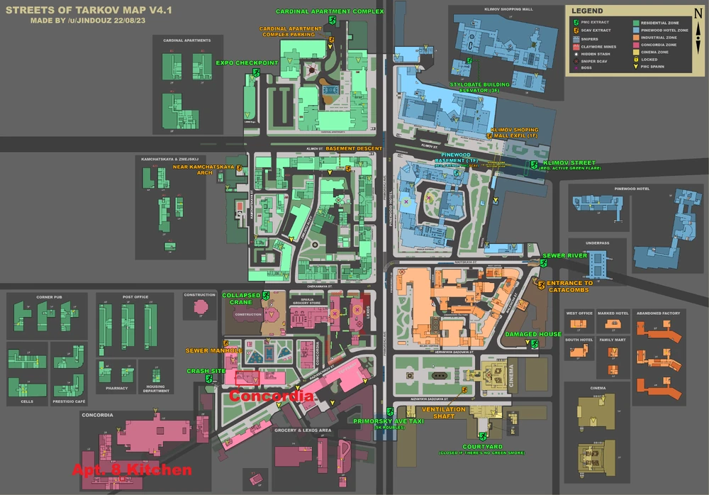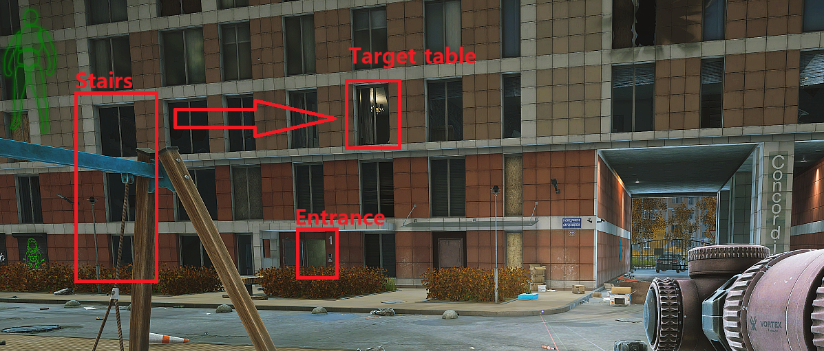 - (타르코프 시내(Streets of Tarkov)) 콘코르디아(Concordia)에서 공사현장이 내려다 보이는 좋은 저격 위치를 찾으세요.