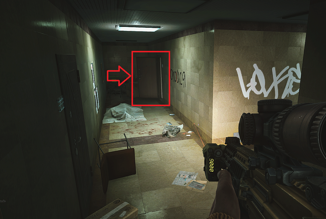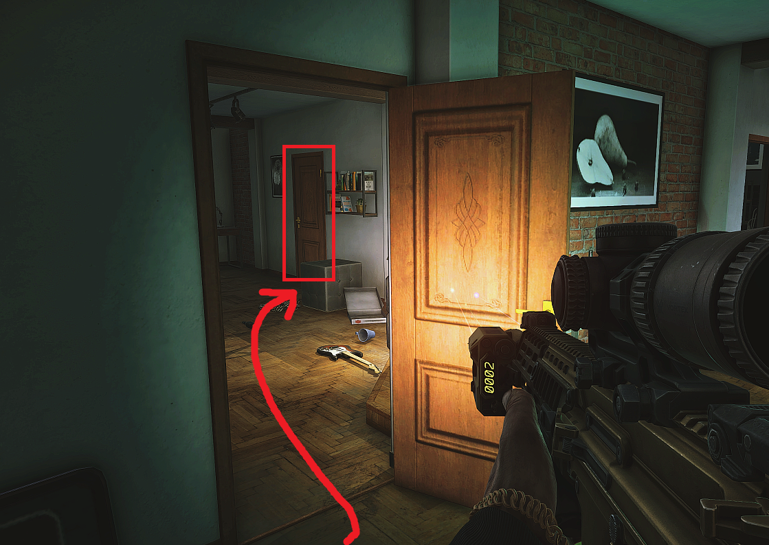 - [Trijicon REAP-IR thermal scope]를 Makhors의 침대(Makhors' bed) 아래에 숨겨두세요.