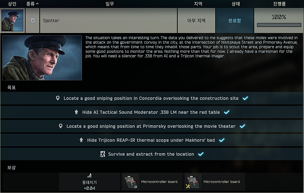 | 타르코프 퀘스트 - Trouble in the Big City (0) | 2025.10.18 |