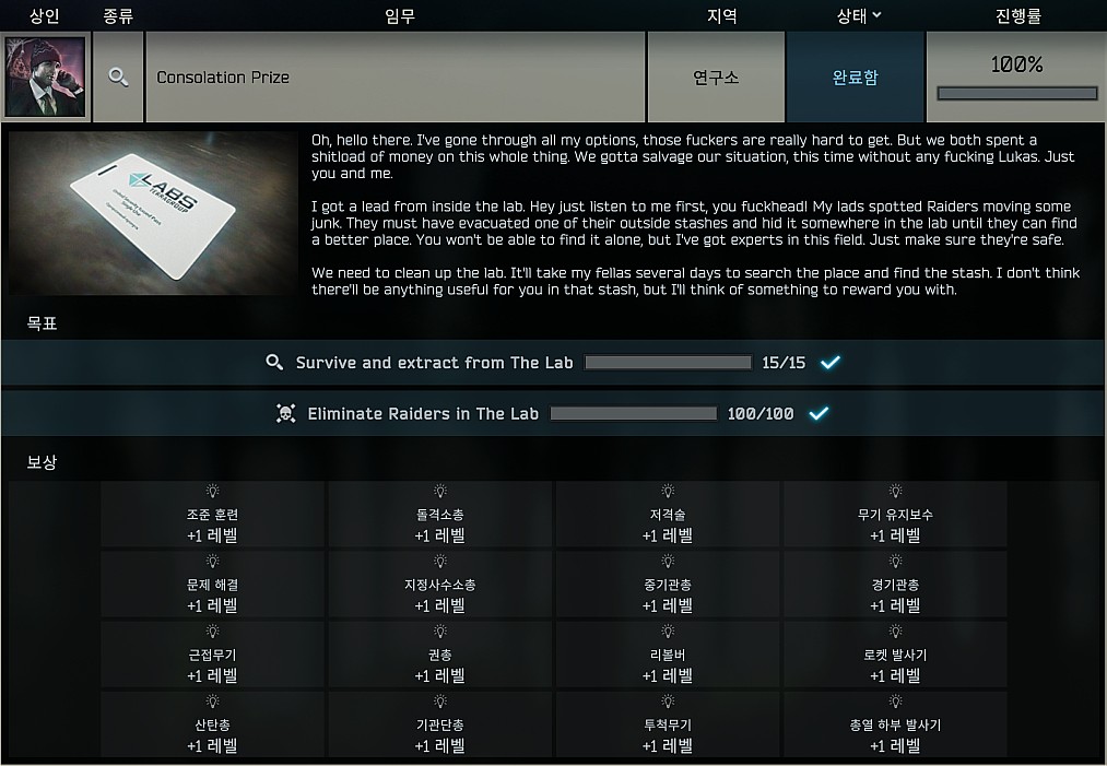 | 타르코프 퀘스트 - Against the Conscience - Part 1 (0) | 2025.10.25 |