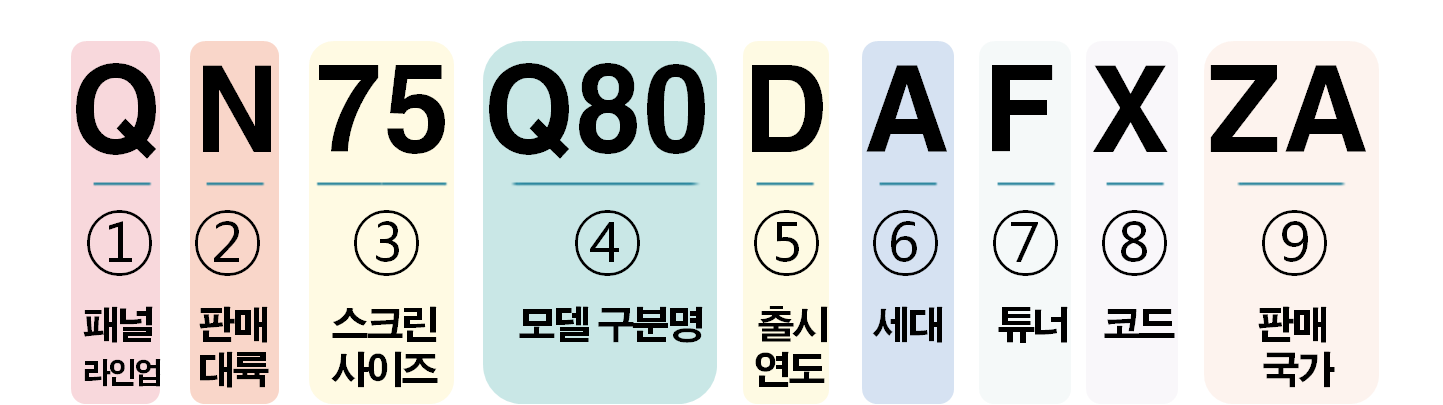 예) QN75Q80DAFXZA 제품을 모델명만 보고 풀어보면 아래와 같습니다.