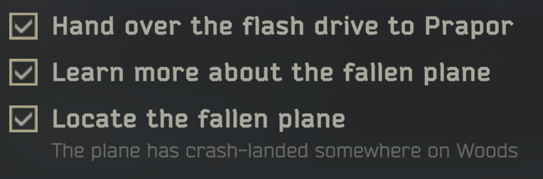타르코프 퀘스트 - Falling Skies; (Learn more about the fallen plane) 본문