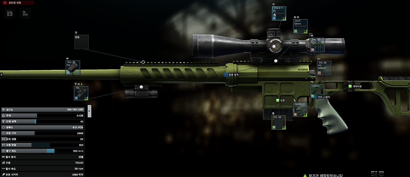 - 구매 해금 : Lone Star TX-15 DML 5.56x45 carbine (스키어 3레벨)