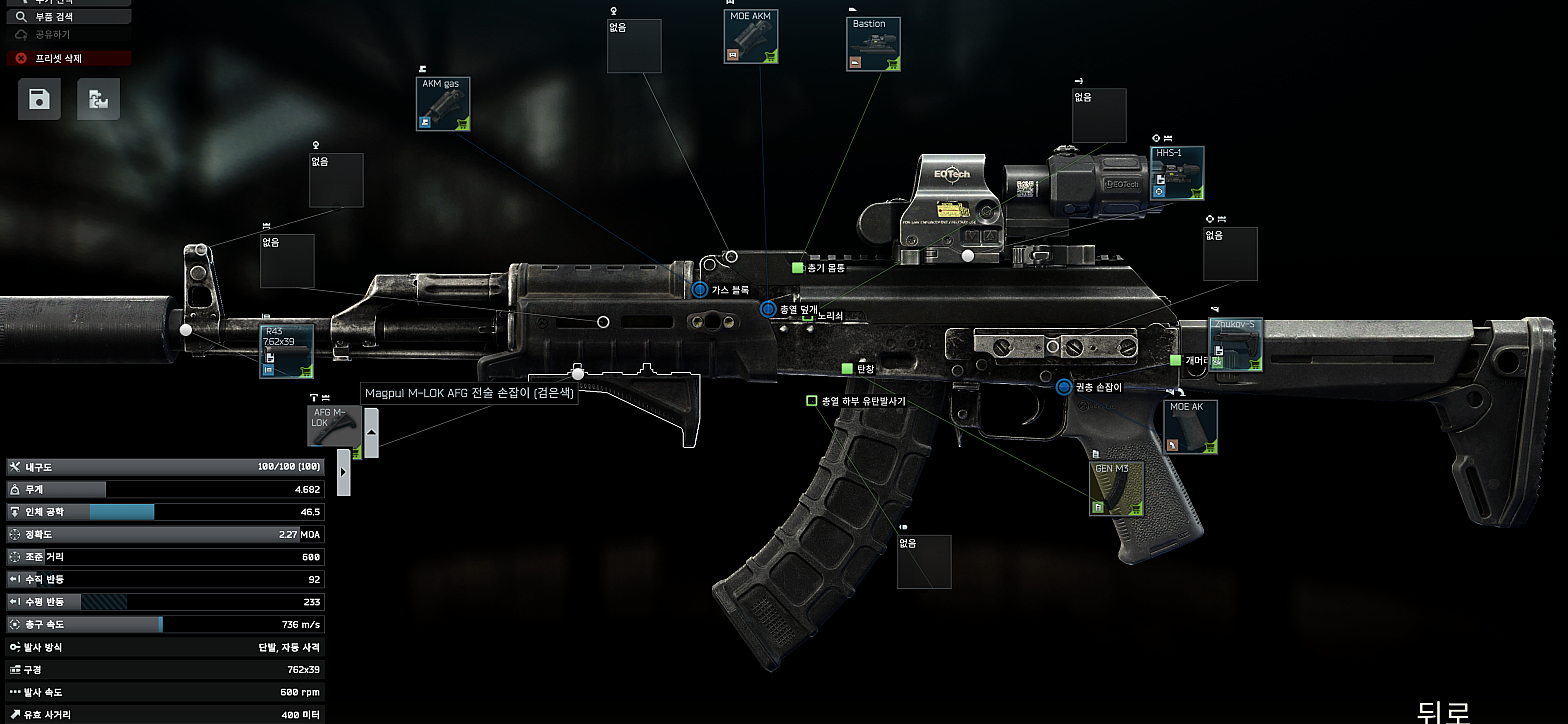 - 구매 해금 : AKM 7.62x39 Kiba Arms .308 muzzle device adapter (메카닉 3레벨)