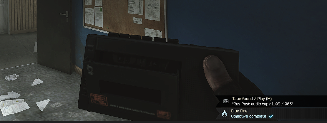 타르코프 시내(Streets of Tarkov)의 우체국으로 갑니다. 3개의 테이프를 얻어서 재생해야 합니다.