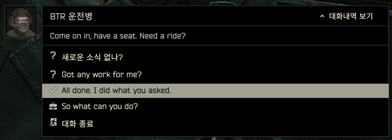 보상을 수령받기 위해서는 로비가 아닌 BTR드라이버를 찾아가서 대화를 해야 합니다.