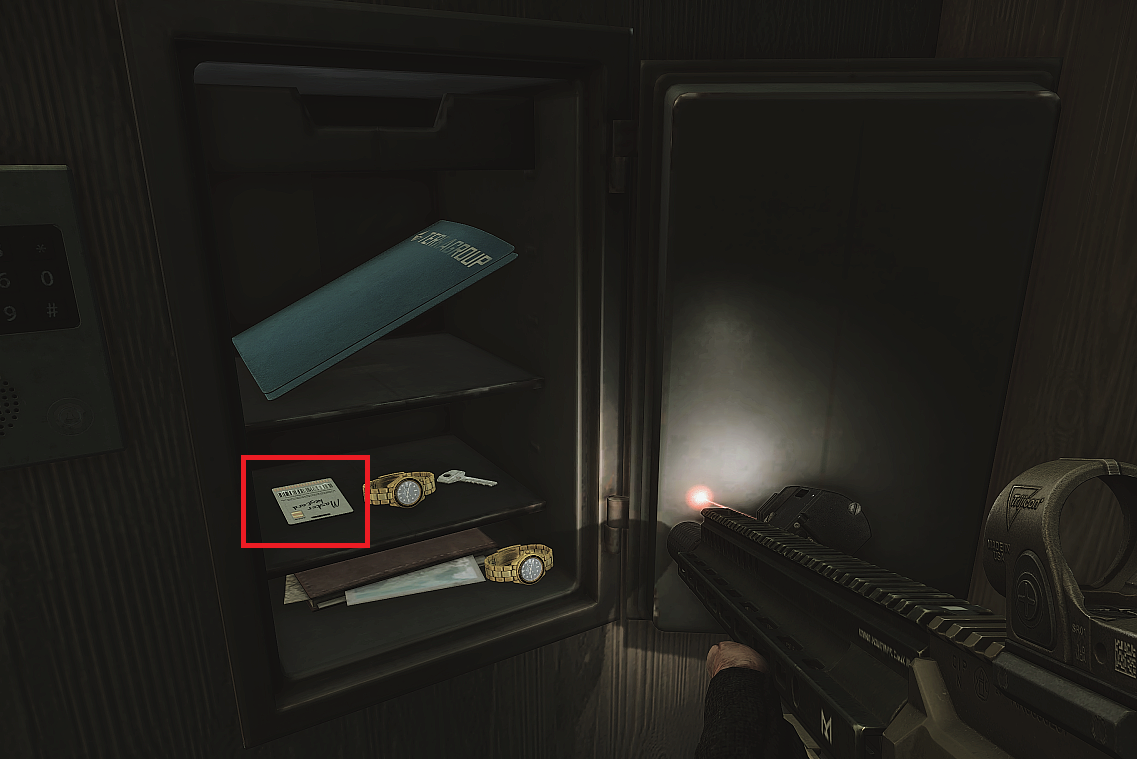 마지막 증거는 타르코프 시내(Streets of Tarkov)의 카디널 아파트(apartments of the Cardinal residential complex) 숨겨진 블랙키 금고에서 얻을 수 있습니다.