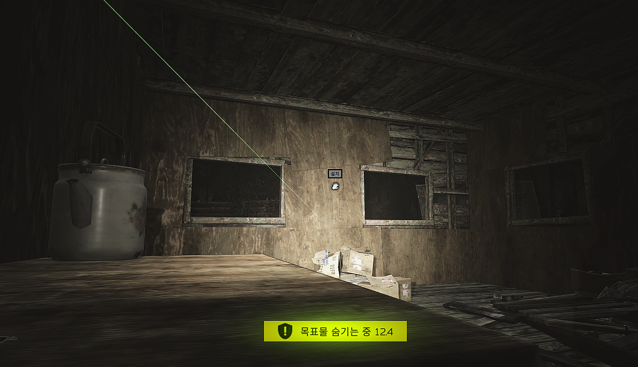 - 화물을 삼림, 우드(Woods)에 있는 스캐브 하우스(Scav house)에 숨기세요.
