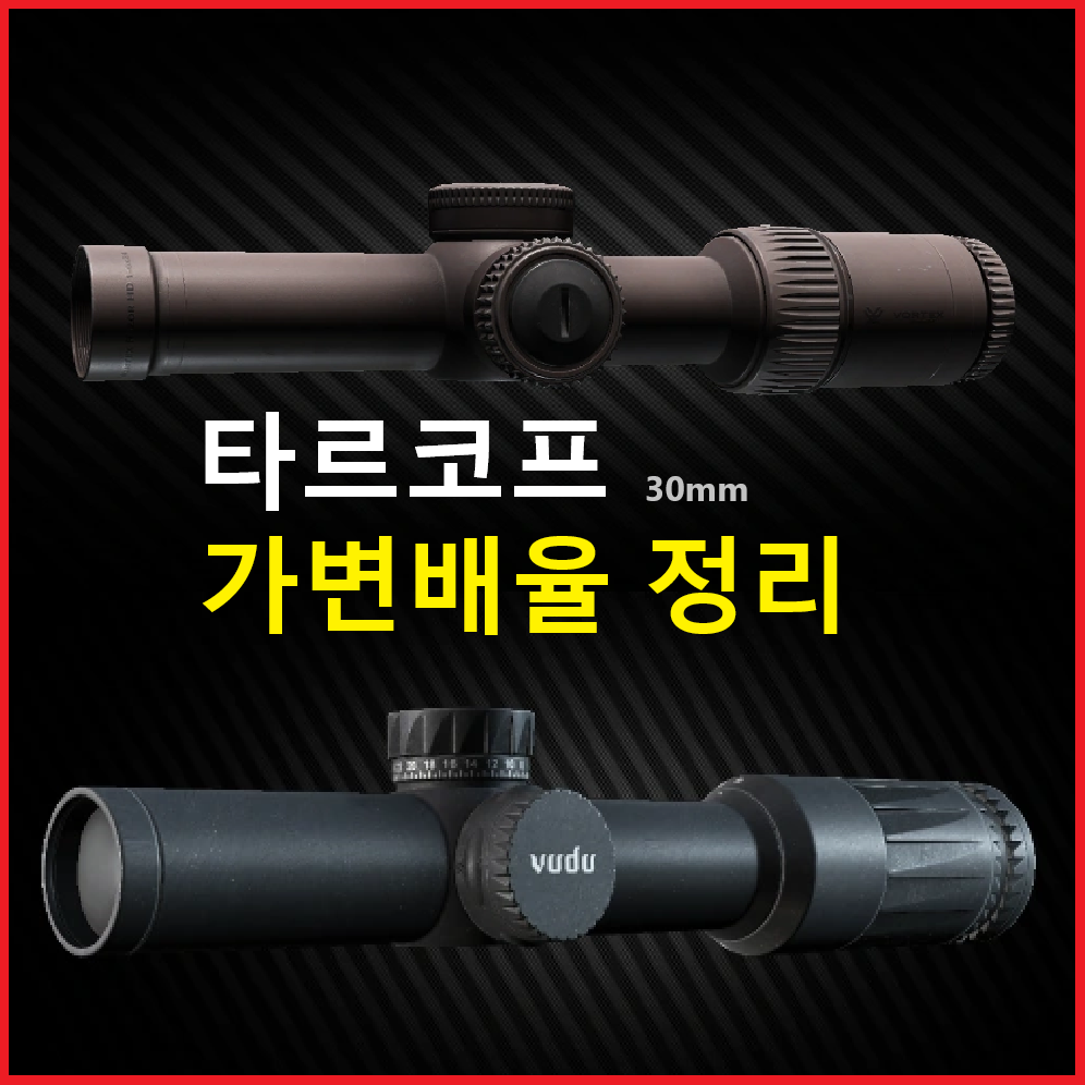 타르코프에서 가장 자주 사용하는 스코프(Scope)는 Alt + 마우스 휠로 배율을 조절가능한 30mm 가변배율 일 것입니다. 각 가변배율의 특징과 장단점을 정리해보고자 합니다.