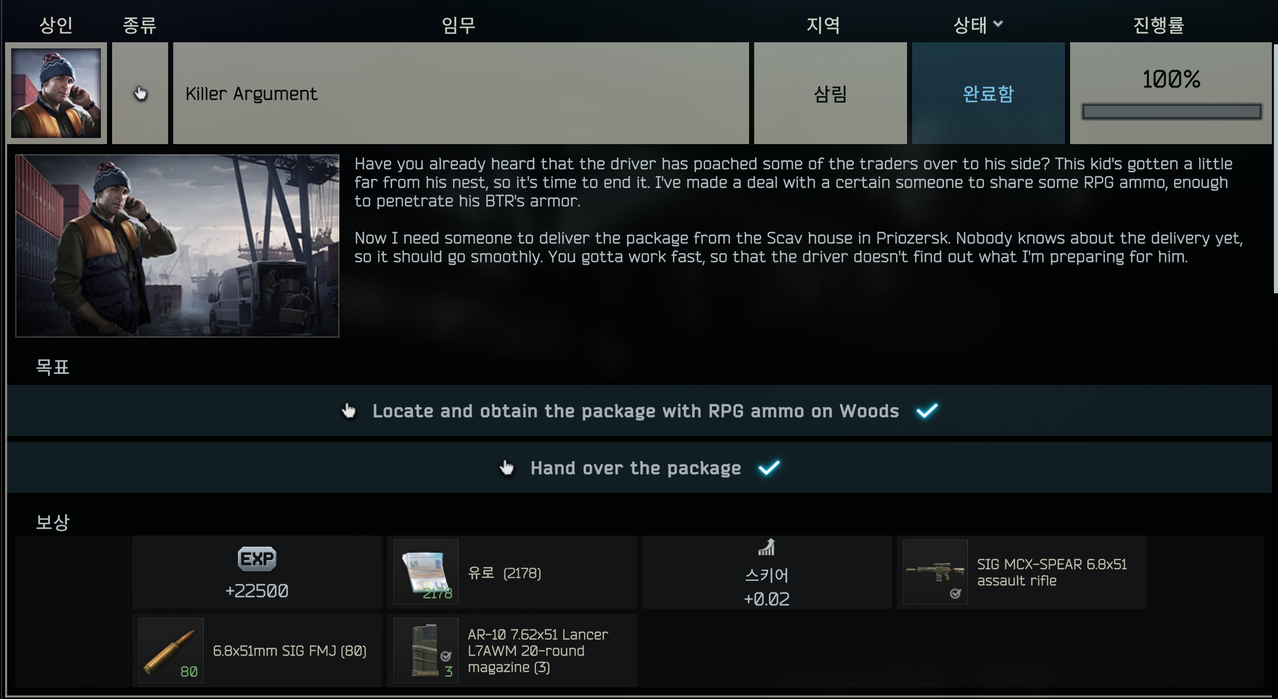 타르코프 [BTR 퀘스트] Killer Argument 본문