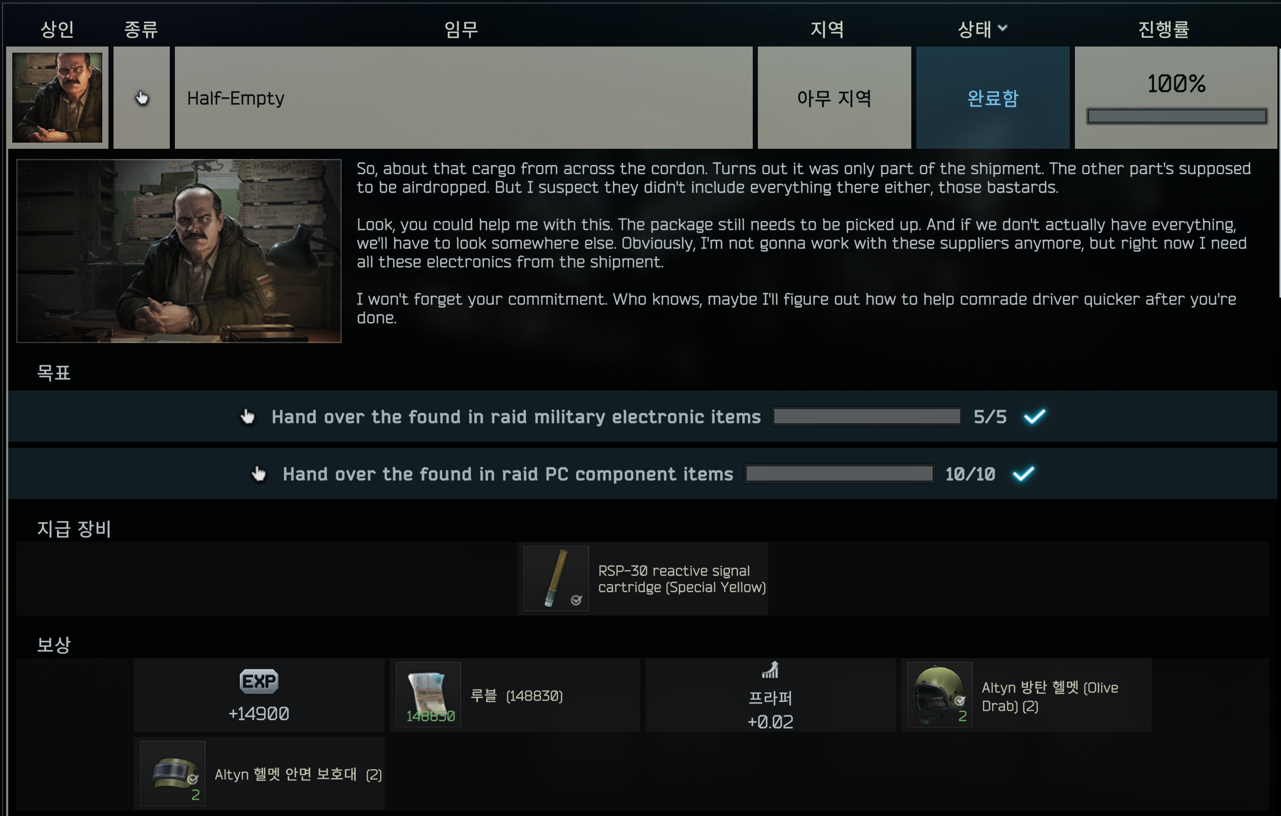 타르코프 [BTR 퀘스트] Half Empty 본문