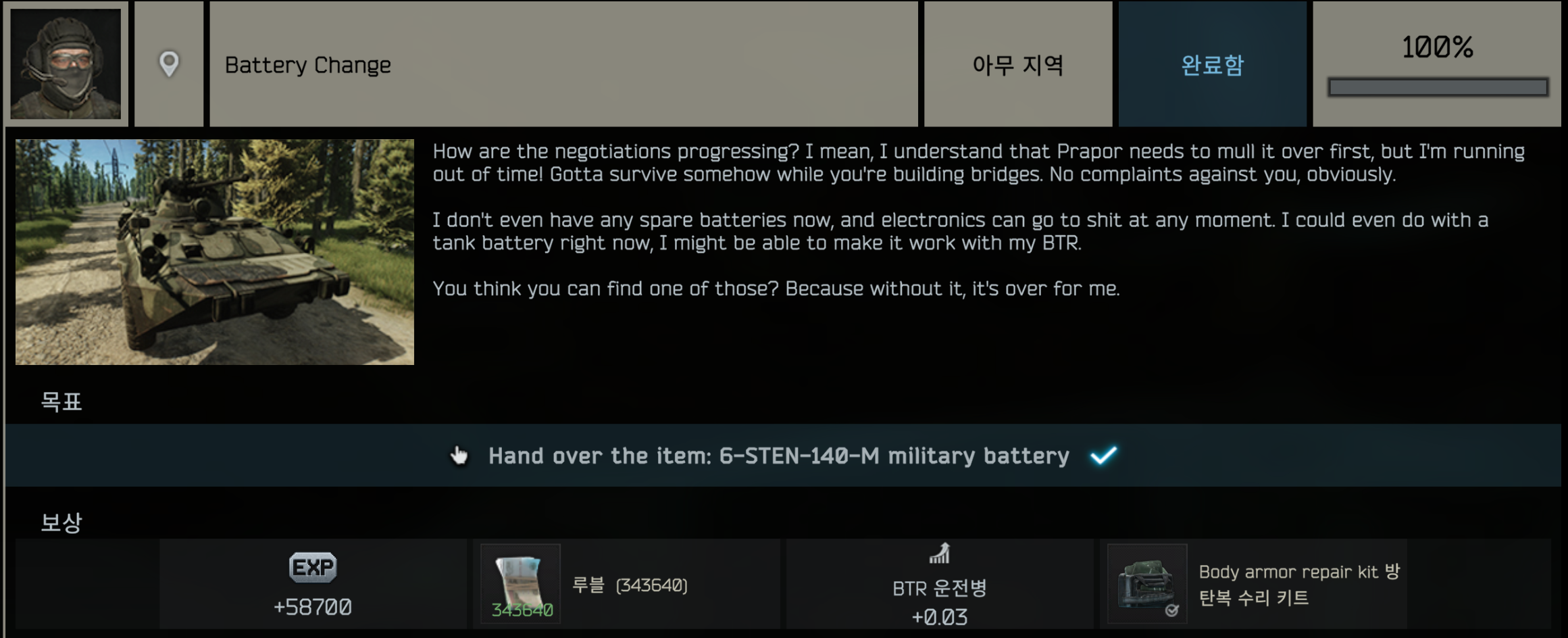 타르코프 [BTR 퀘스트] Battery Change 본문