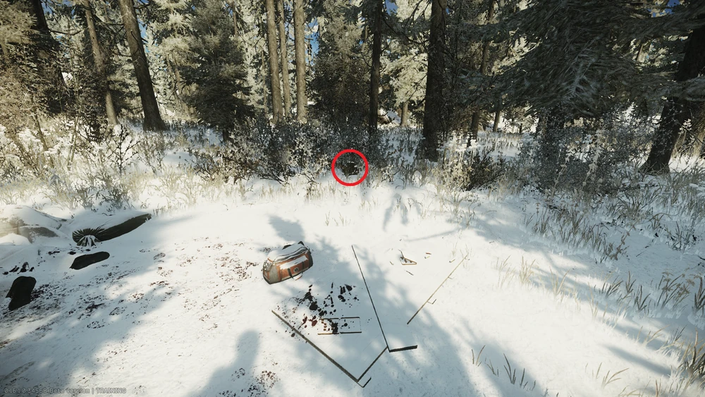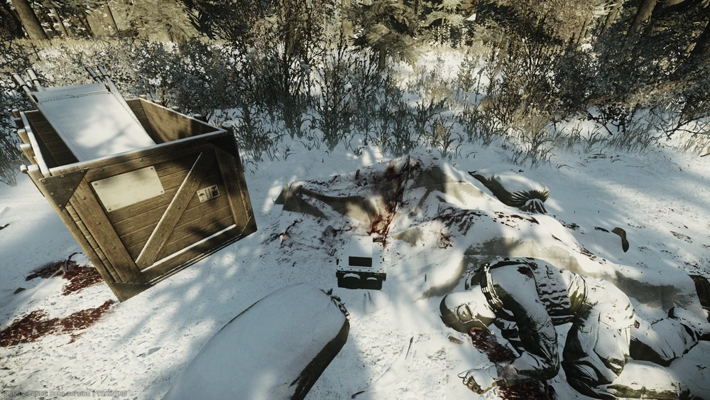 | 호수 방향 덤불 | 시체 반대편 상자 내부 | |