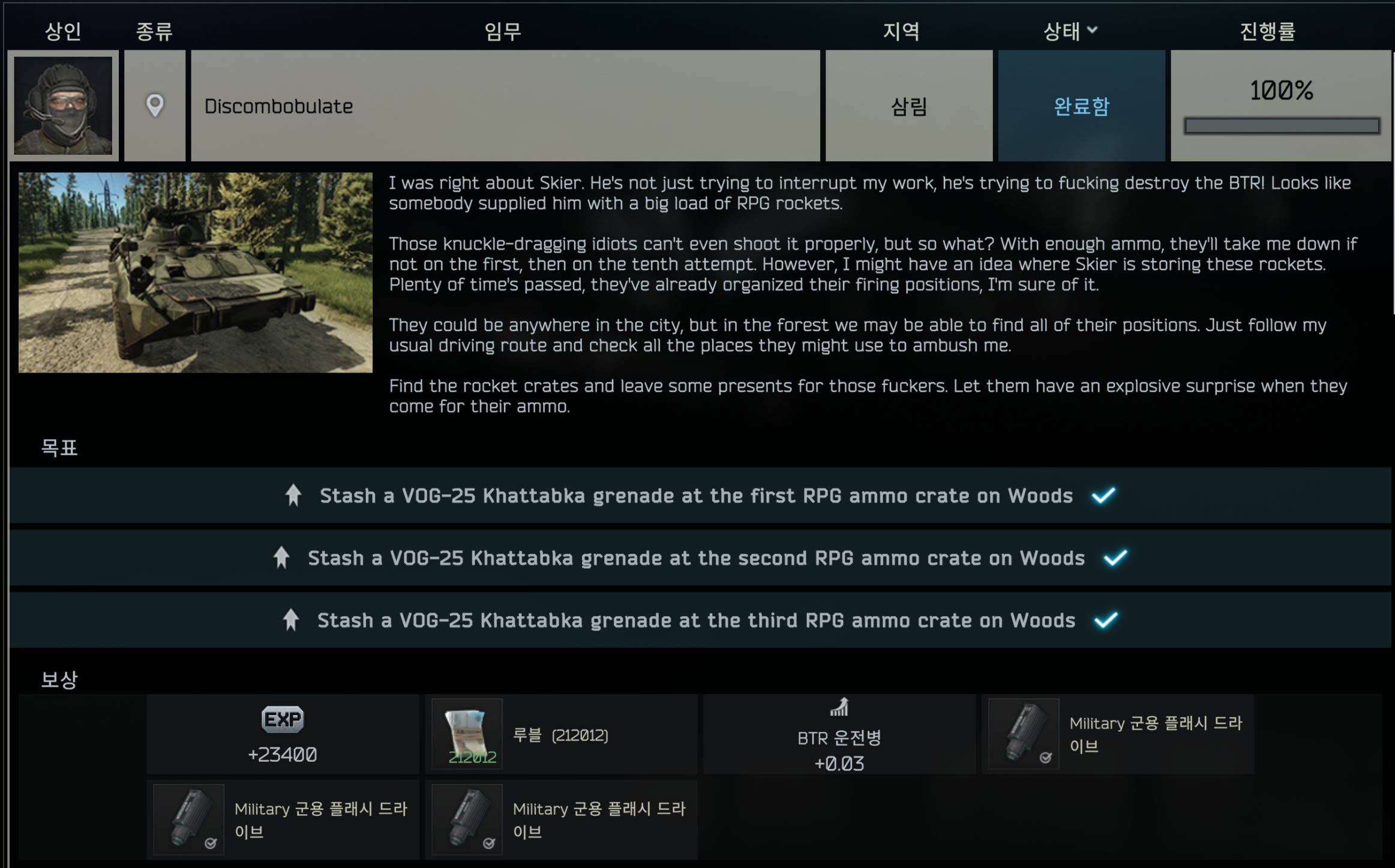 타르코프 [BTR 퀘스트] Discombobulate 본문