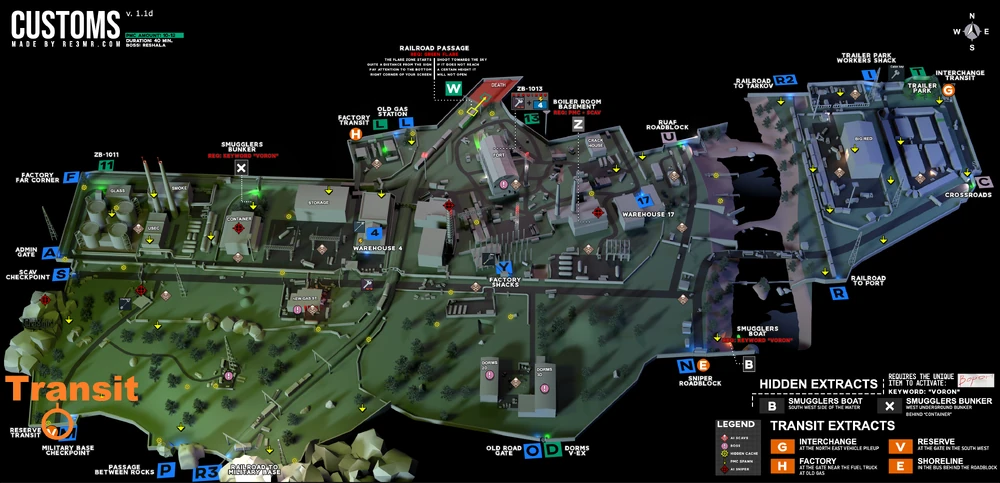 | 세관(Customs) to 리저브(Reserve) 트랜짓(Transit) 위치 | 인게임 트랜짓(Transit) |