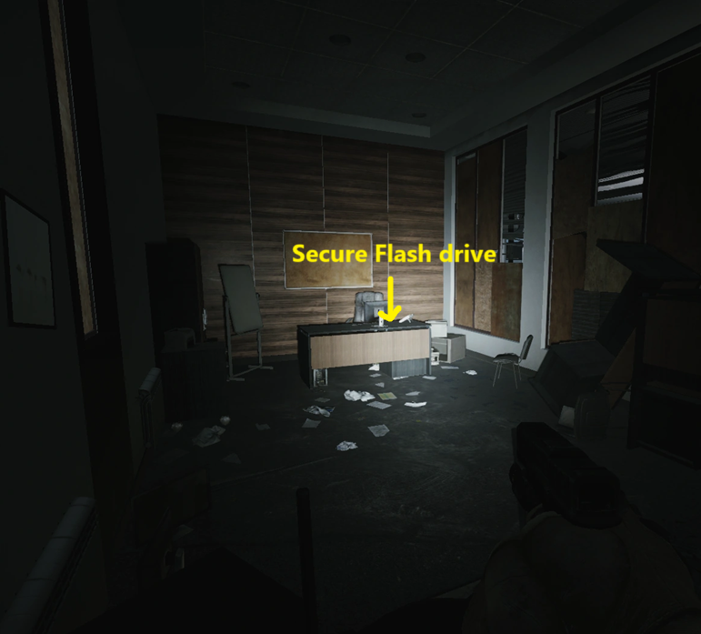 - 타르코프 시내(스오타, Streets of Tarkov)의 Car dealership director's office room에서 Digital storage device를 얻으세요.