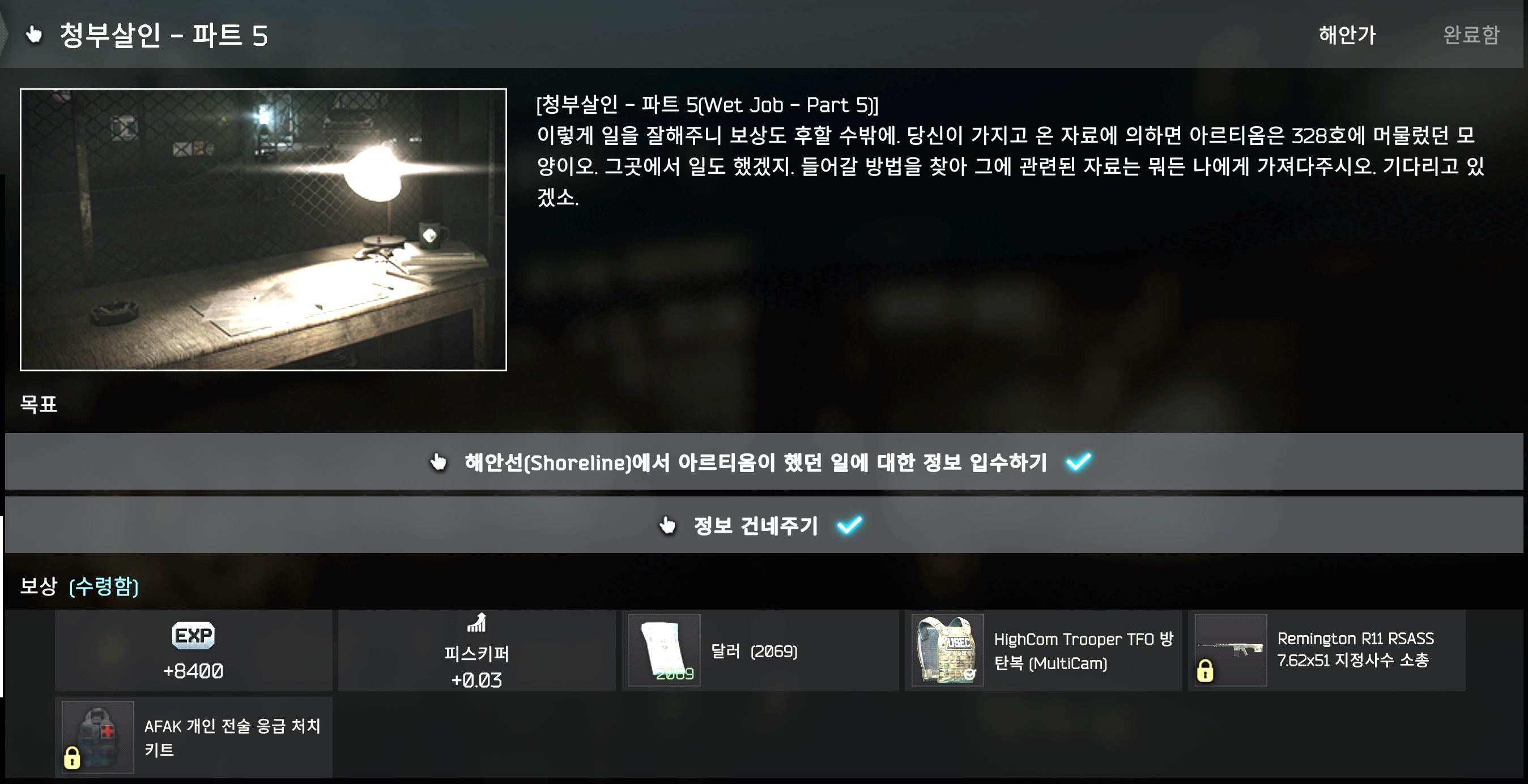 타르코프 퀘스트 - 청부 살인 - 파트 5(Wet Job - Part 5) 본문