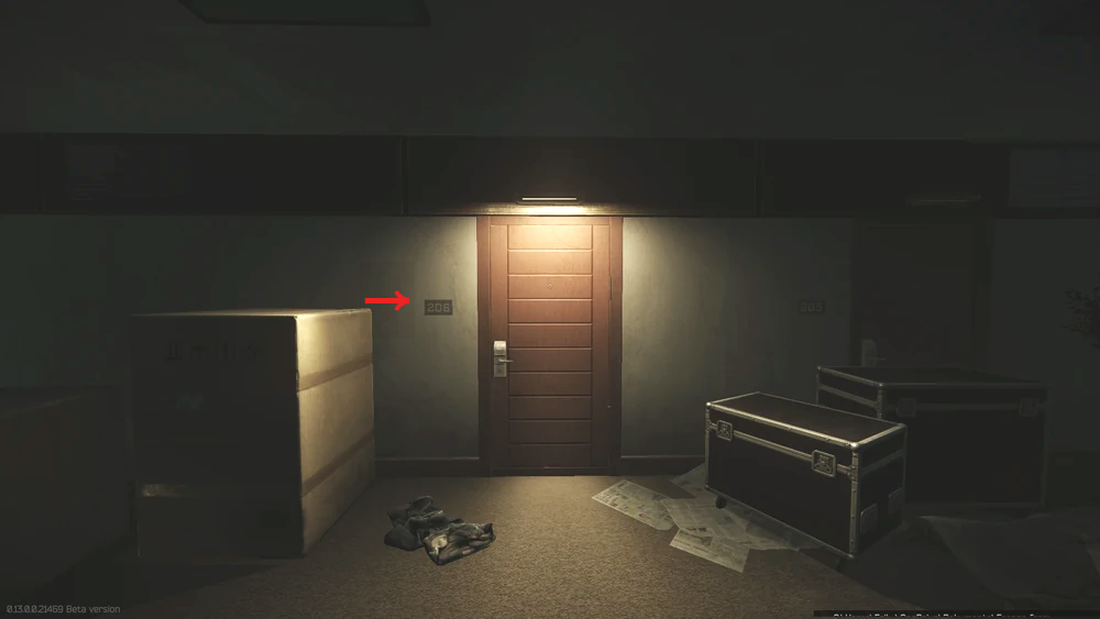 파인우드(Pinewood) 호텔 북측 2층 206호에 들어가서 죽어있는 채무자 시체에 가까이 다가가면 됩니다.